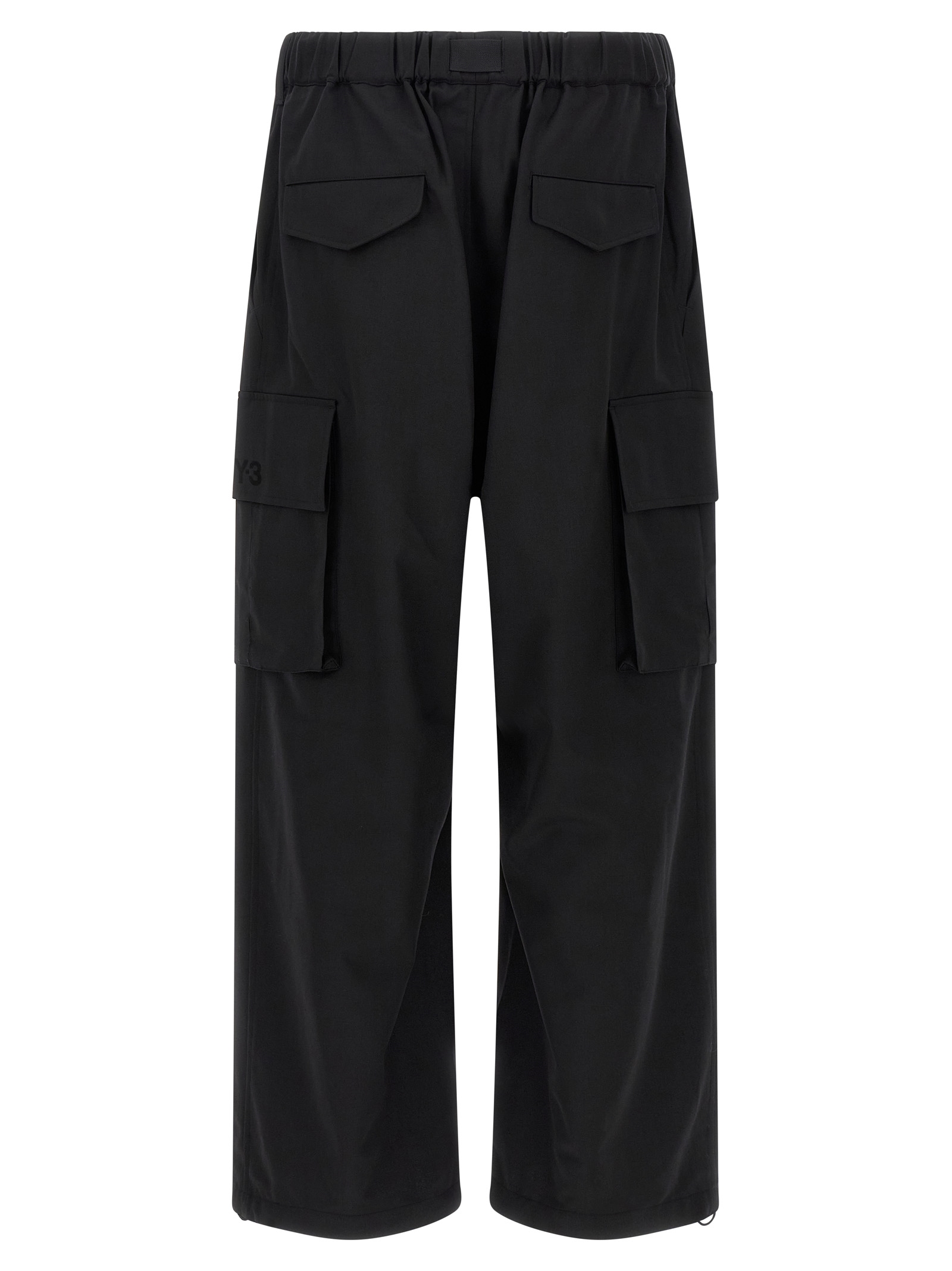 Cargo pants in wool blend with side pockets, zip and front button closure, removable integrated belt, wide leg, pockets, drawstring on the leg bottom.