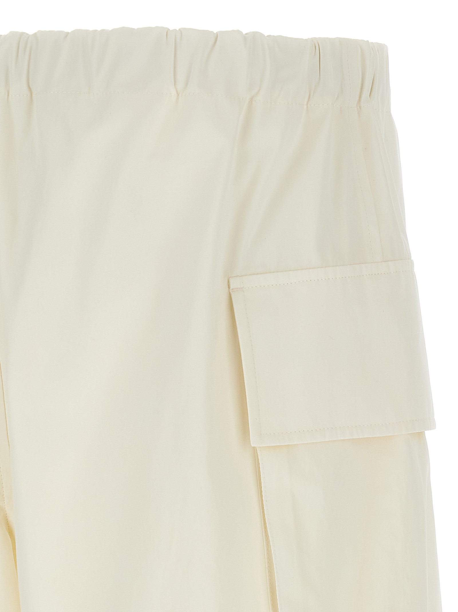 '94' cotton poplin bermuda shorts with low crotch style, tone-on-tone logo embroidery on the front, cargo pockets, adjustable drawstring at the waist, zip and front button closure.
