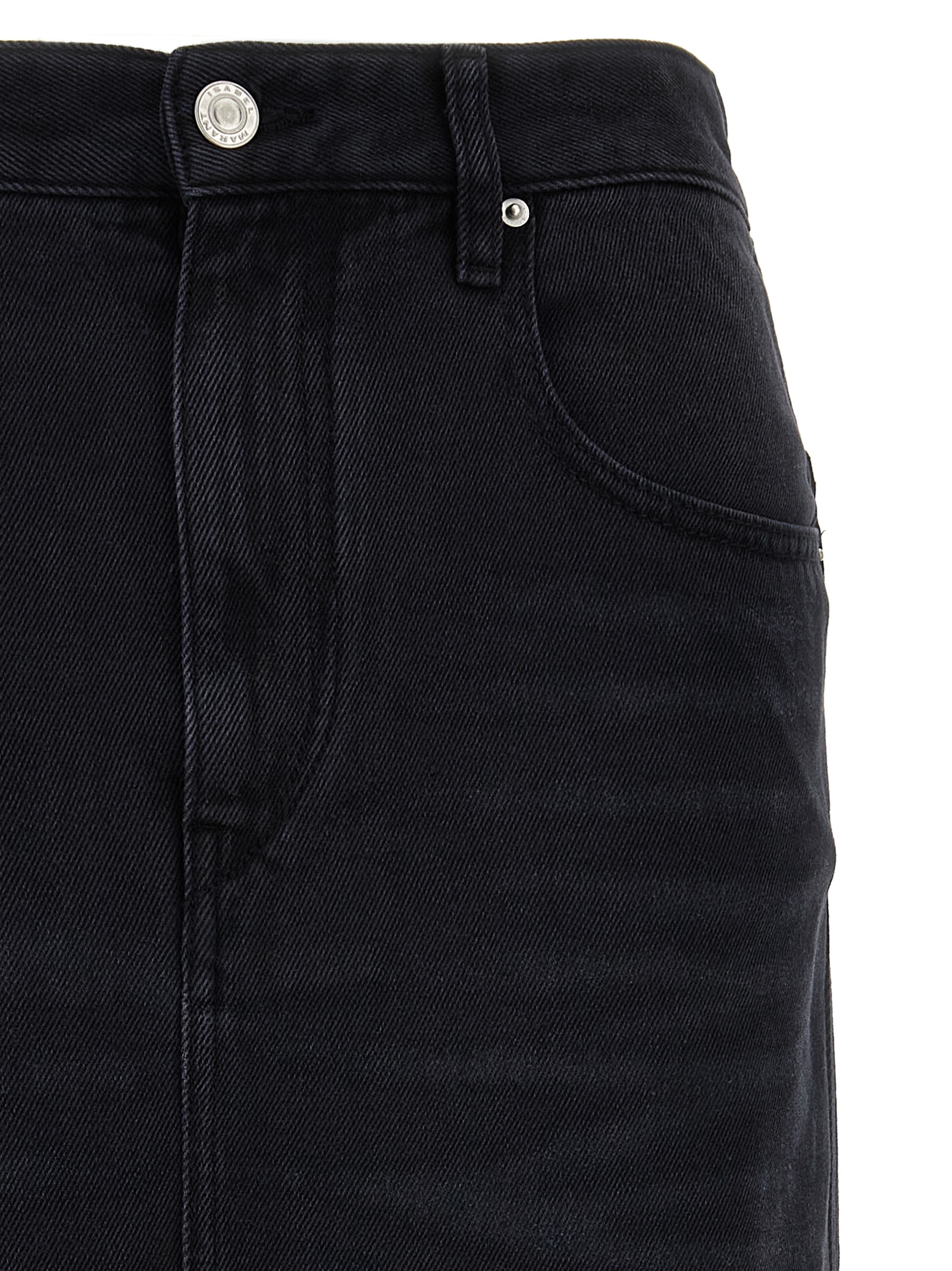 'Tilauria' denim skirt, zip and button closure, five pockets, leather logo tag, front split.