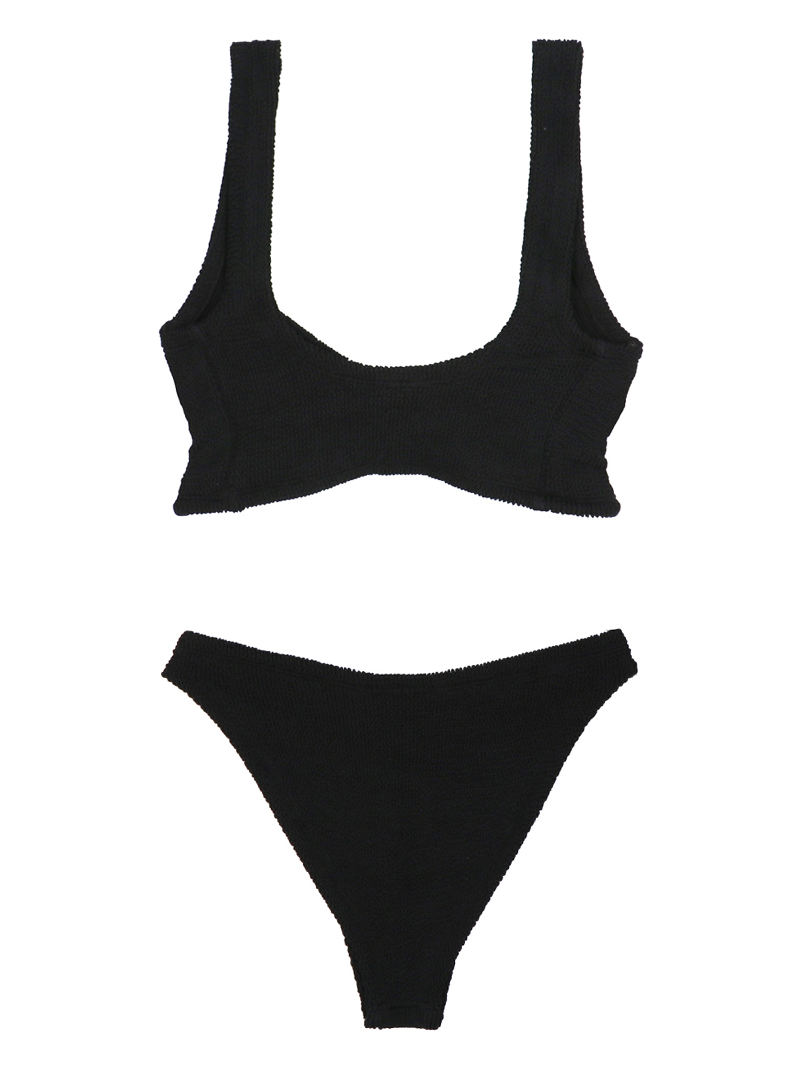 June' bikini crafted in a seamless crinkle fabric with crossed bra and regular briefs.