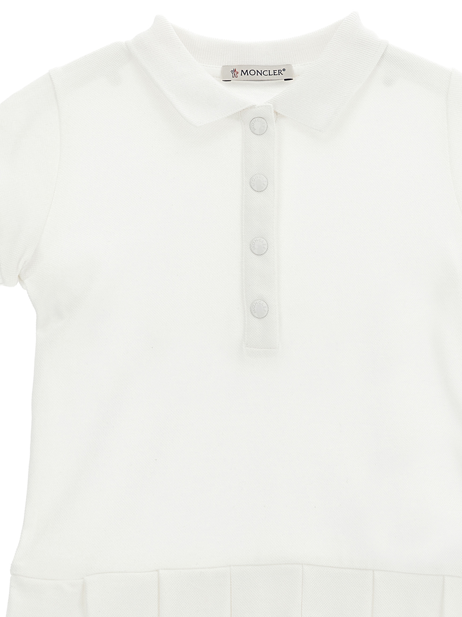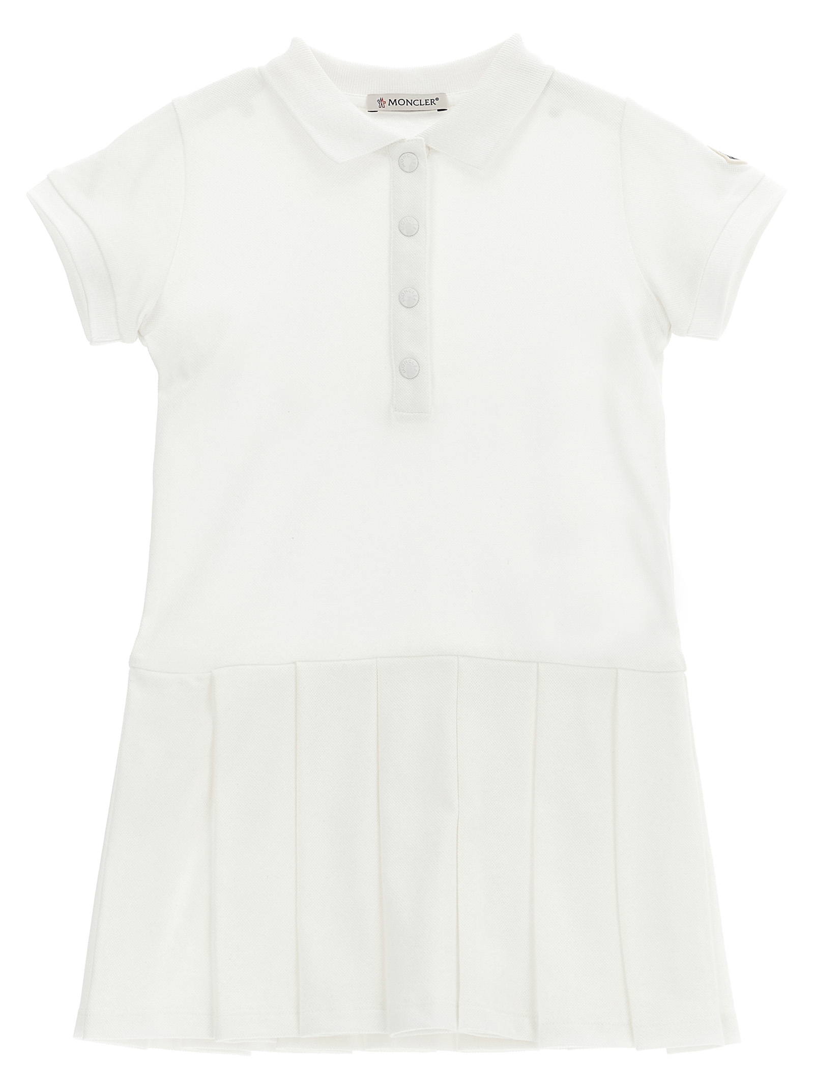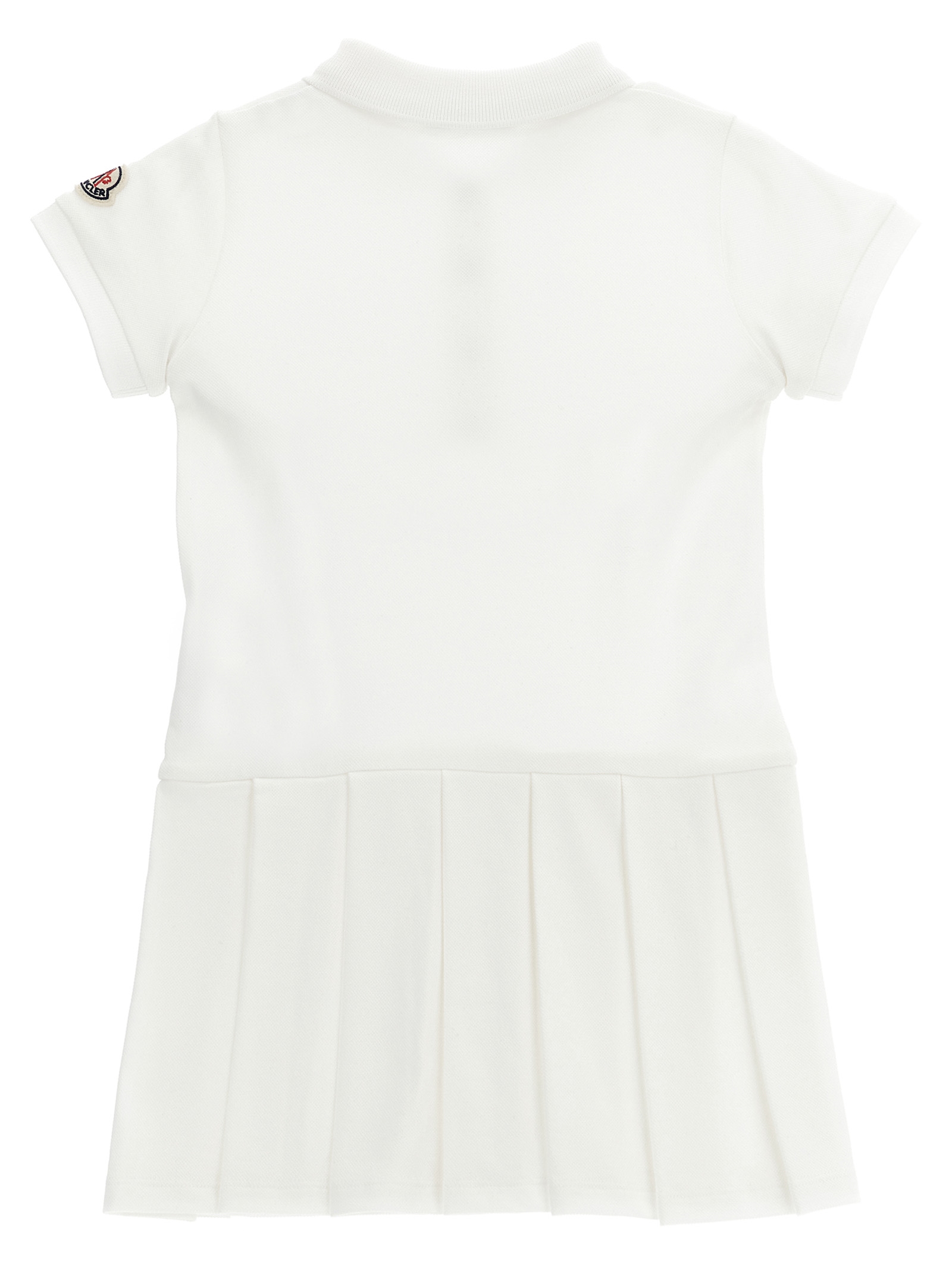 Piqué cotton polo dress with collar and snap buttons, short cuffed sleeves, felt logo patch, pleated skirt, flared silhouette.