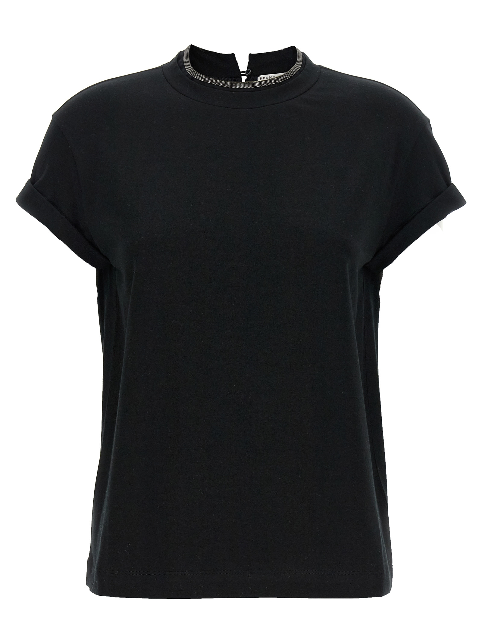 Cotton jersey T-shirt, crew neck with Monile detail, button closure with back drop cut-out details, short sleeve with lapels.