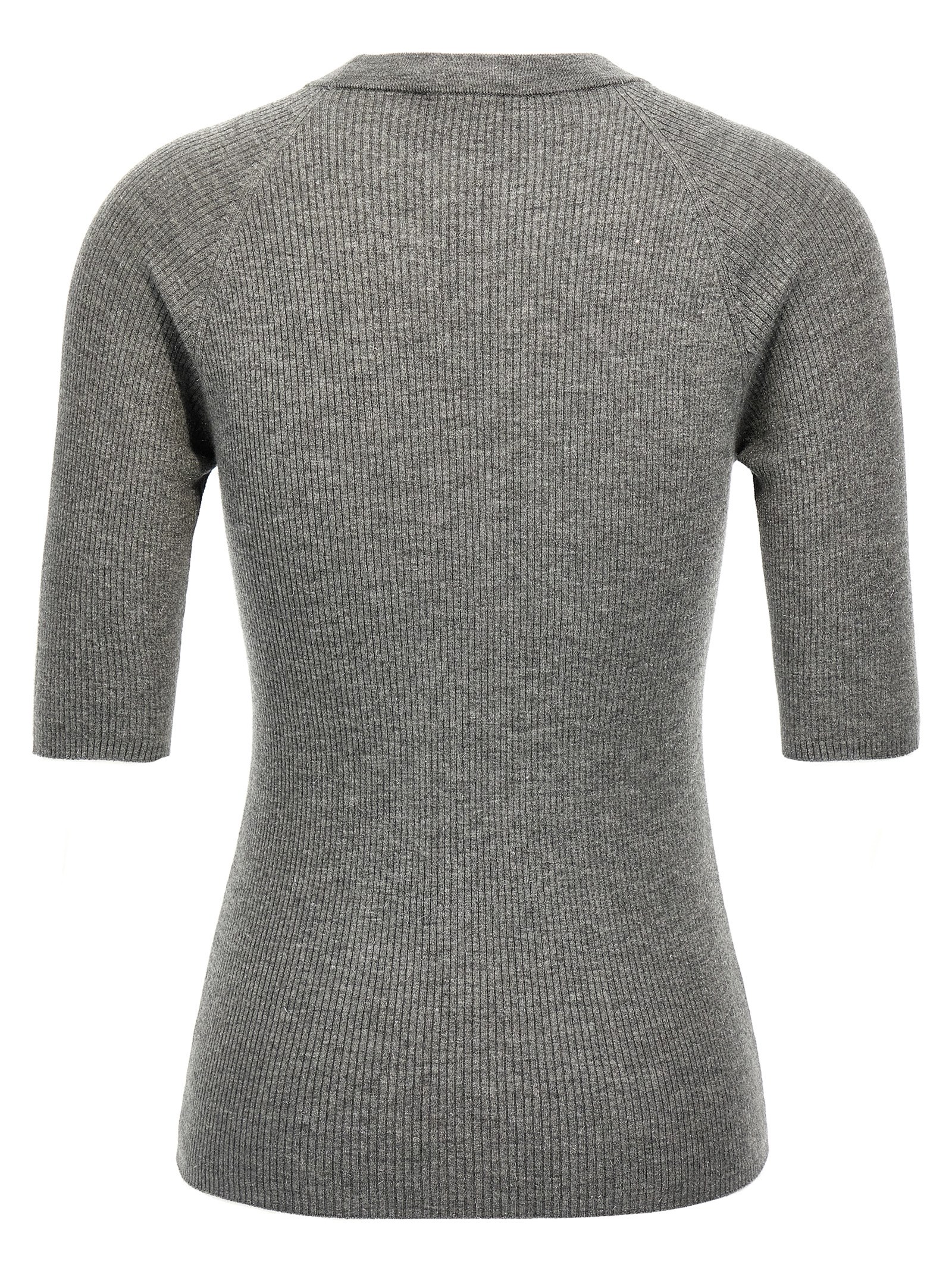 Lurex ribbed cashmere blend sweater with crew neck, short sleeves.