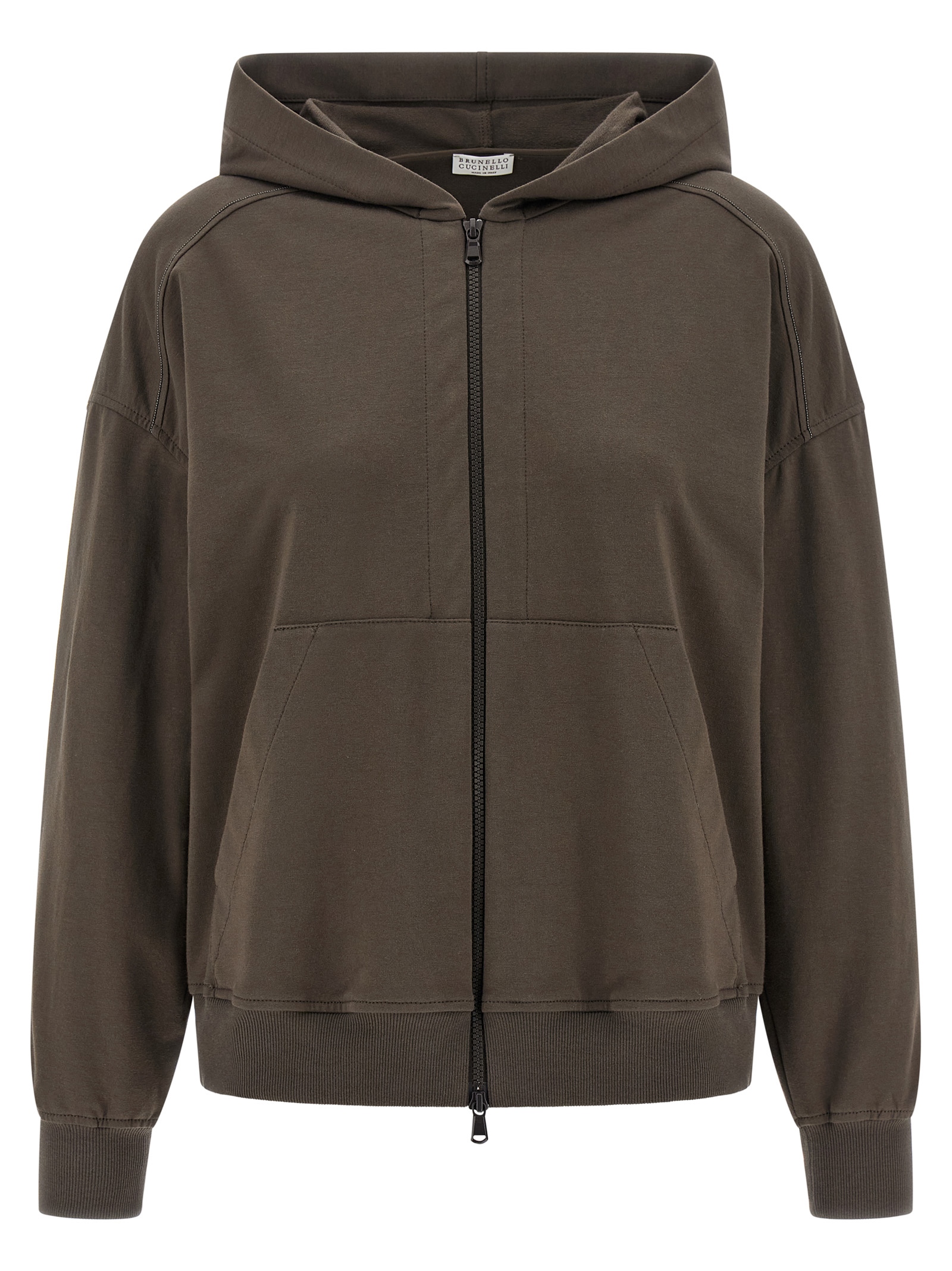 Hoodie in brushed cotton with Monile detail and front zip closure, pockets, long sleeves with cuffs and dropped shoulders.