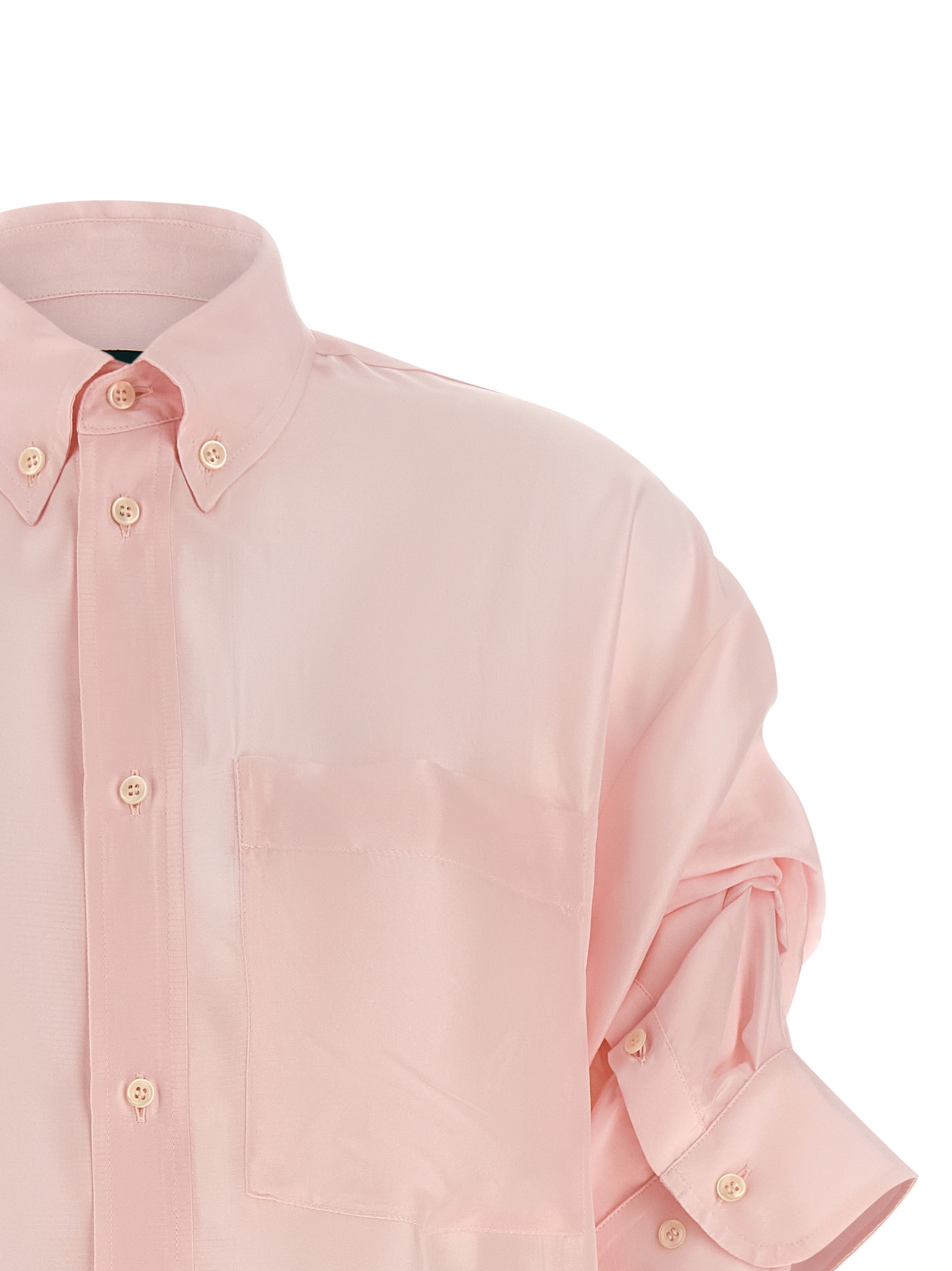 Men's Buba silk shirt with slightly loose fit, button down collar, front cannon closure with buttons, 3/4 sleeves with cuffs and buttons and crinkled detail.