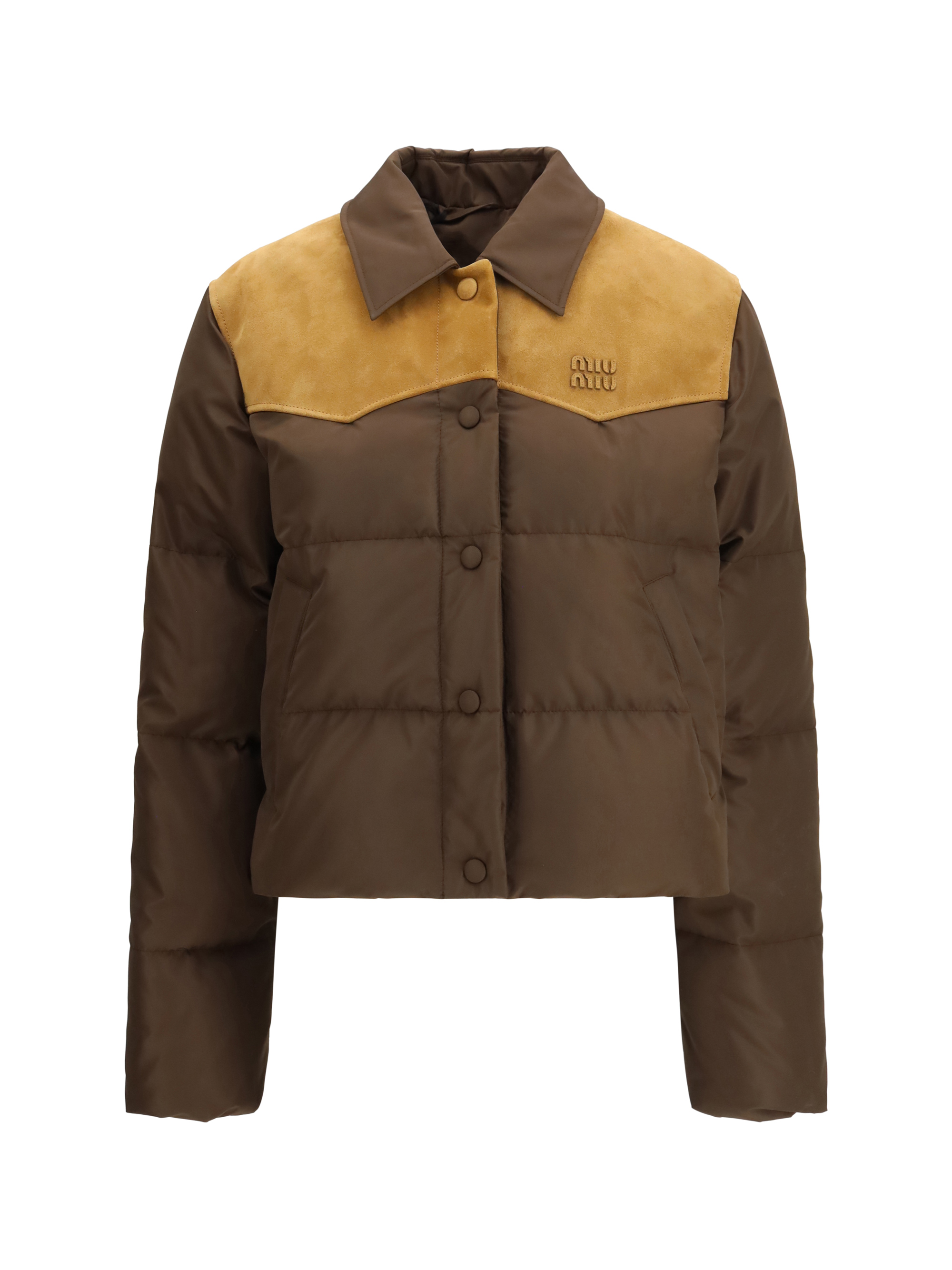 Piumino in pongé tec e pelle