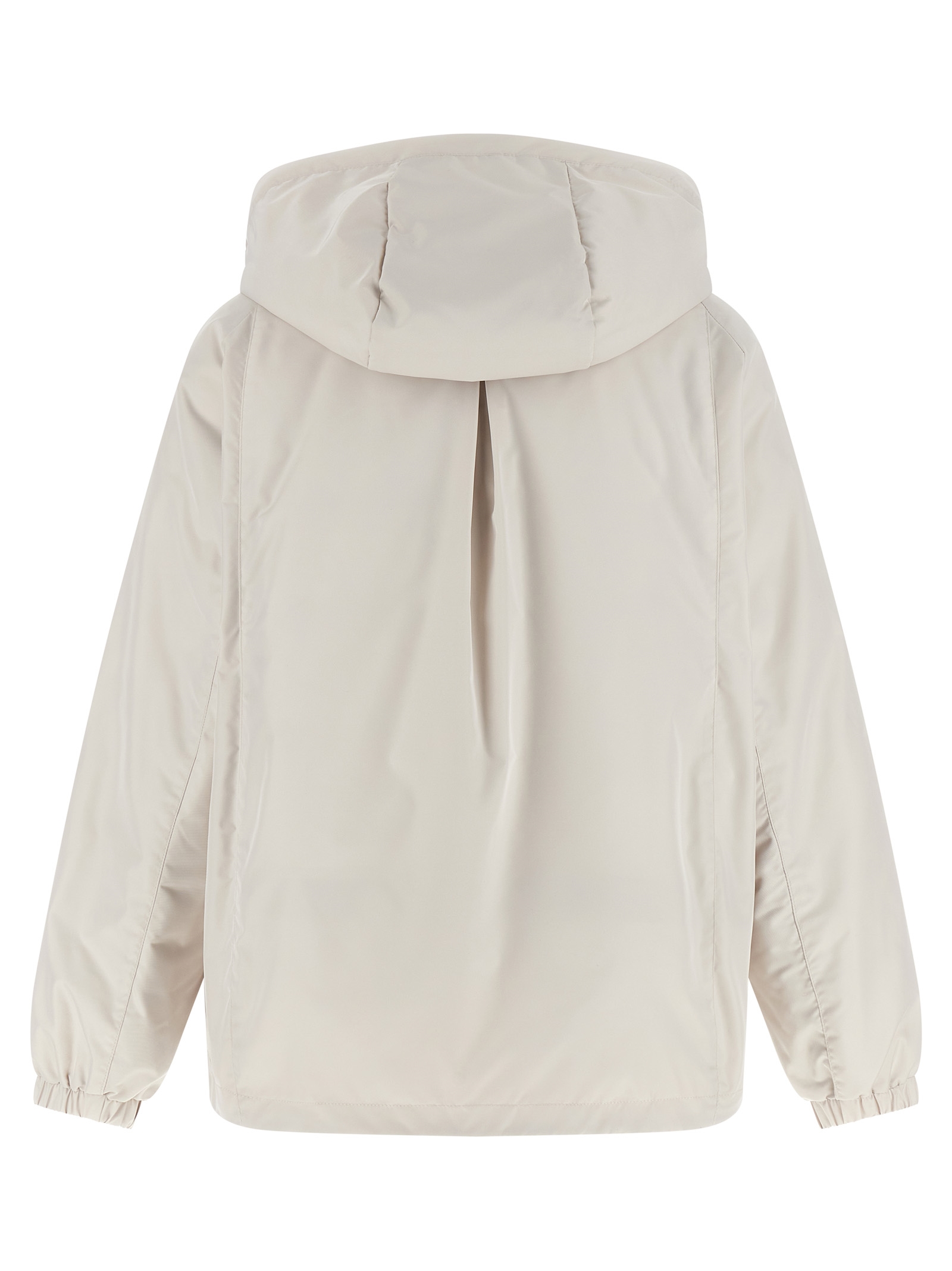 'Soave' jacket - 'Acqua' line in water-repellent shape memory technical fabric slightly padded with goose down, adjustable and removable hood, standing collar, front zip closure, pockets, long raglan sleeves with elastic cuffs, drawstring on the hem, quilted boudin lining.