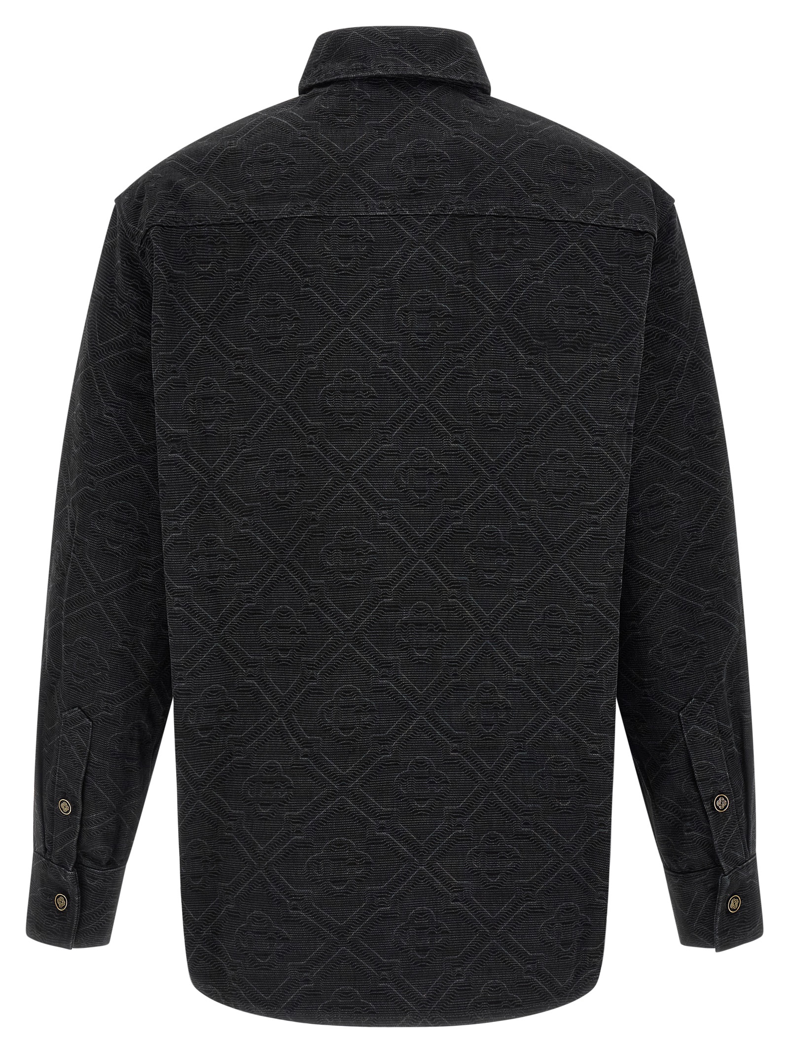 'Laser Monogram Denim' overshirt in cotton denim monogram motif of the maison made with laser techniques, front enameled logo button closure, pockets, long cuffed sleeves.