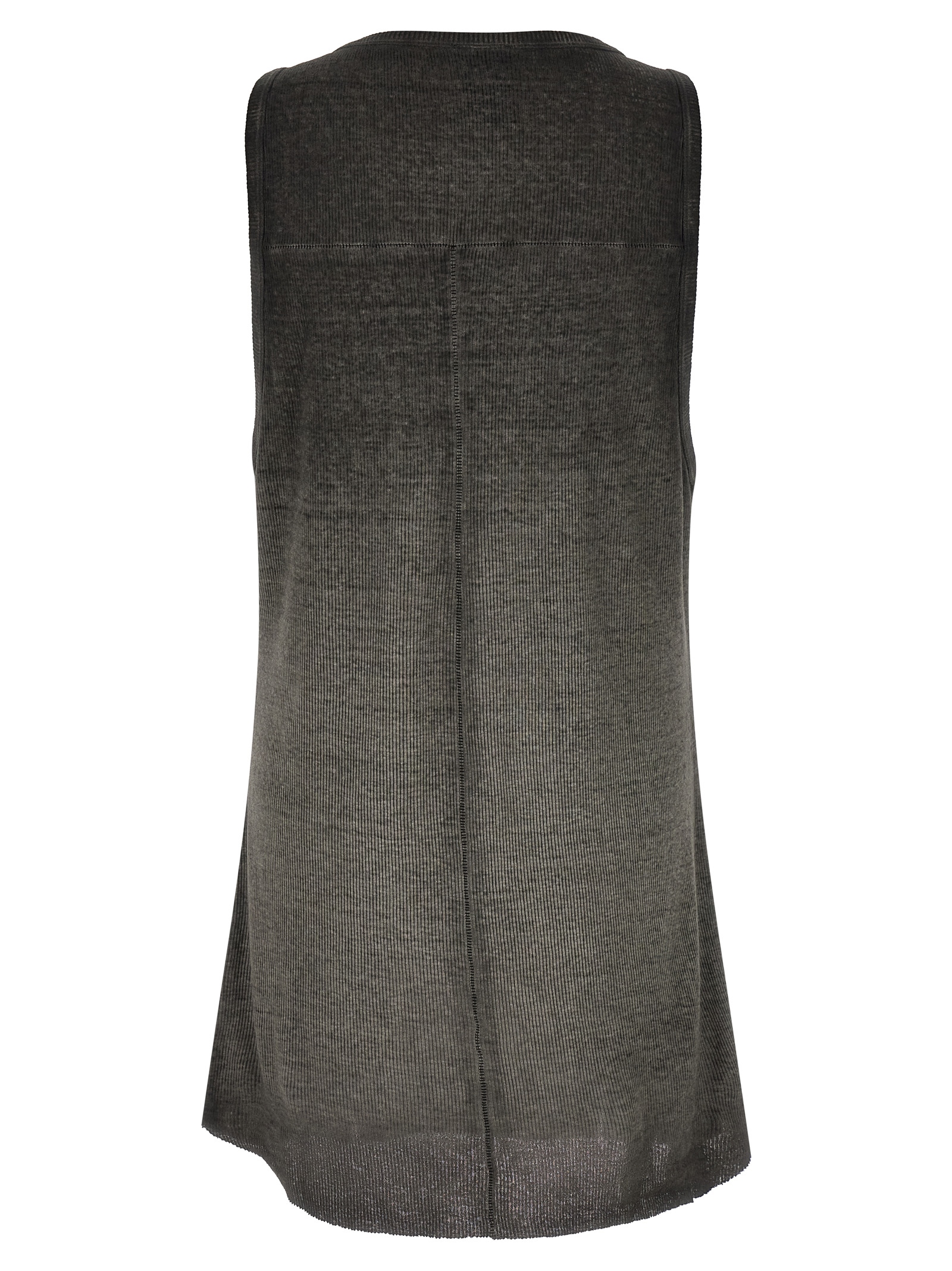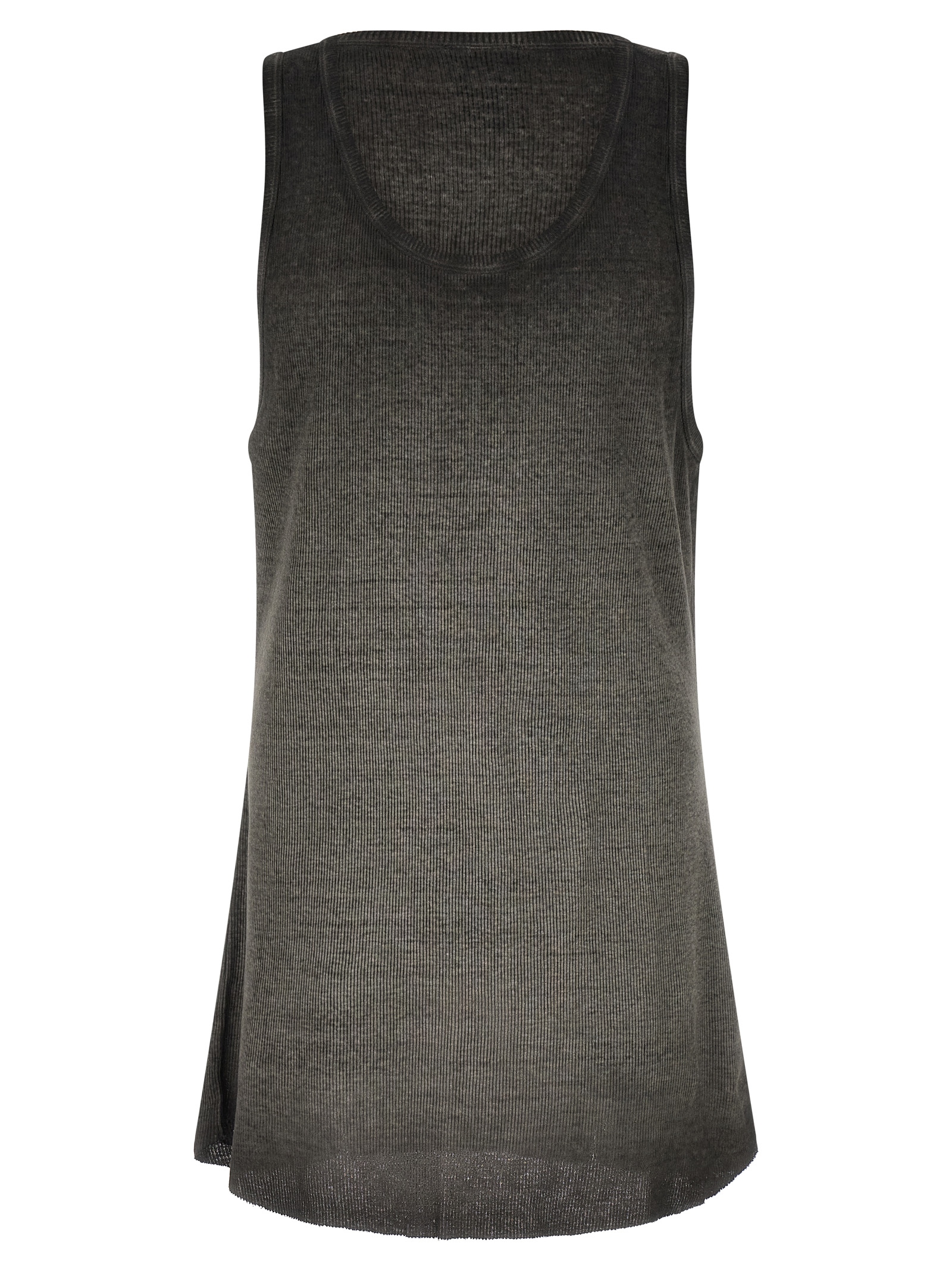 '947' tank top in ribbed cotton and linen blend with délavé effect, round neckline, rounded hem with raw cut hem.