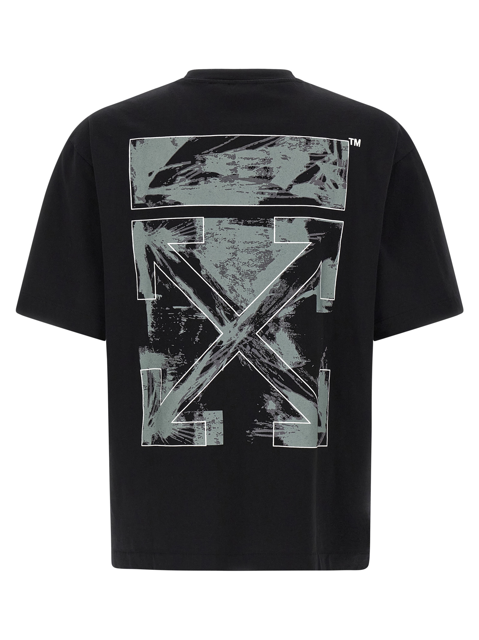 Cotton jersey T-shirt with front logo print, back 'Paint Arrow' print, crew neck, short sleeves with dropped shoulders, side slits.