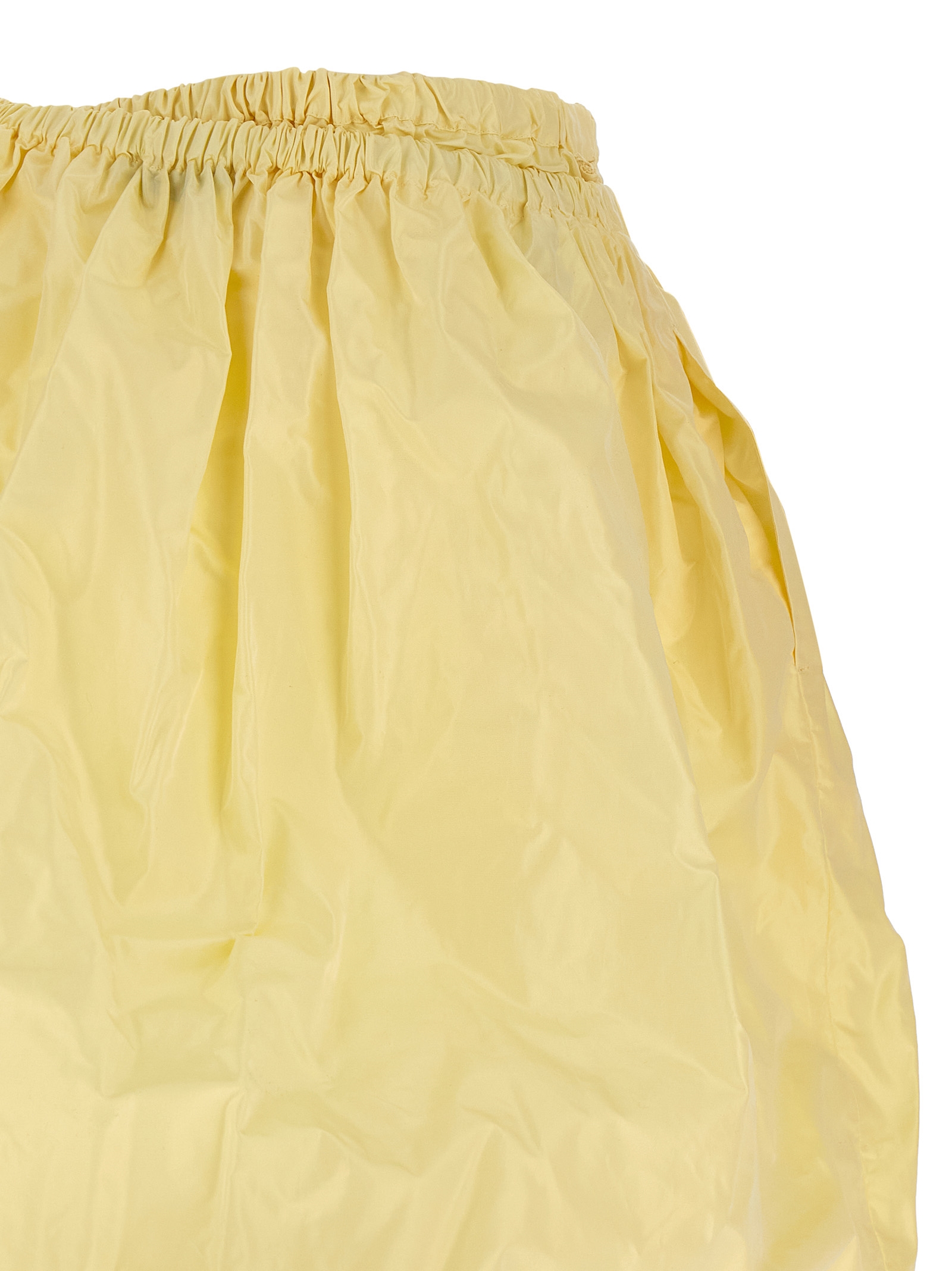 Midi skirt in tec taffeta with elastic waistband, pockets, asymmetrical hem with cloud structure, unlined.