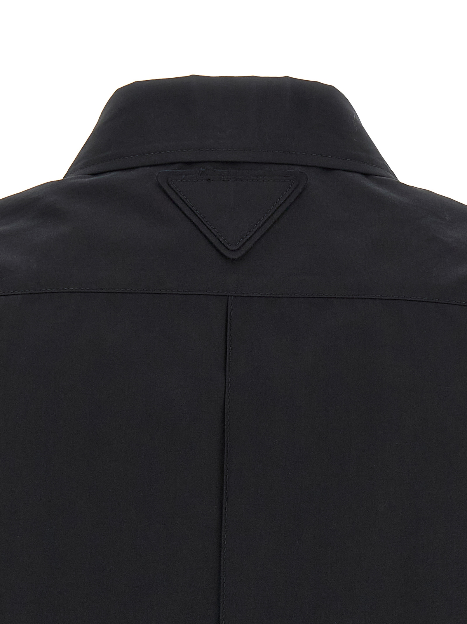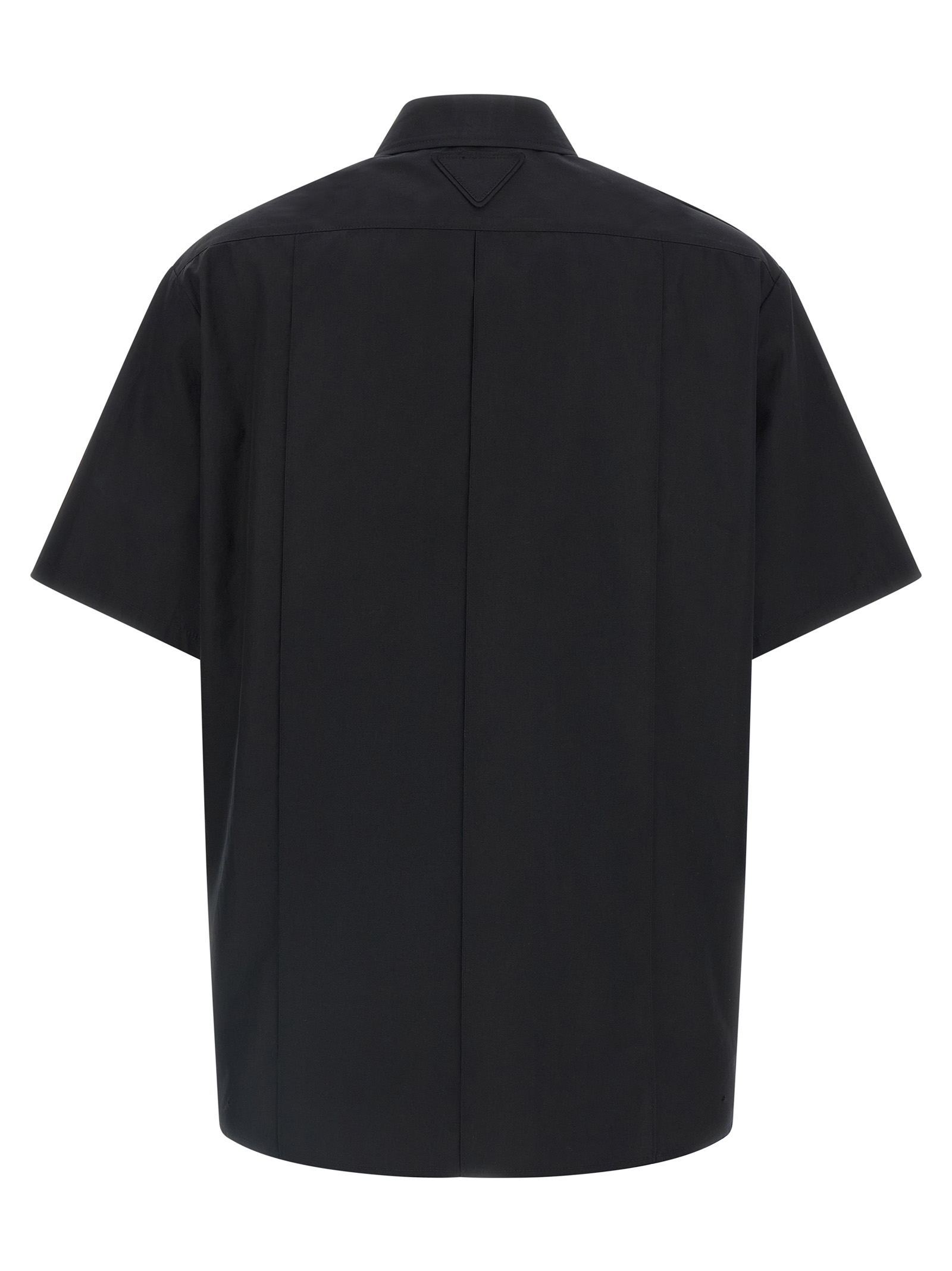 Men's workwear chinoshirt in cotton with tone-on-tone triangle fabric logo on the back, pockets, front button closure, and short sleeves with toe on the shoulder.