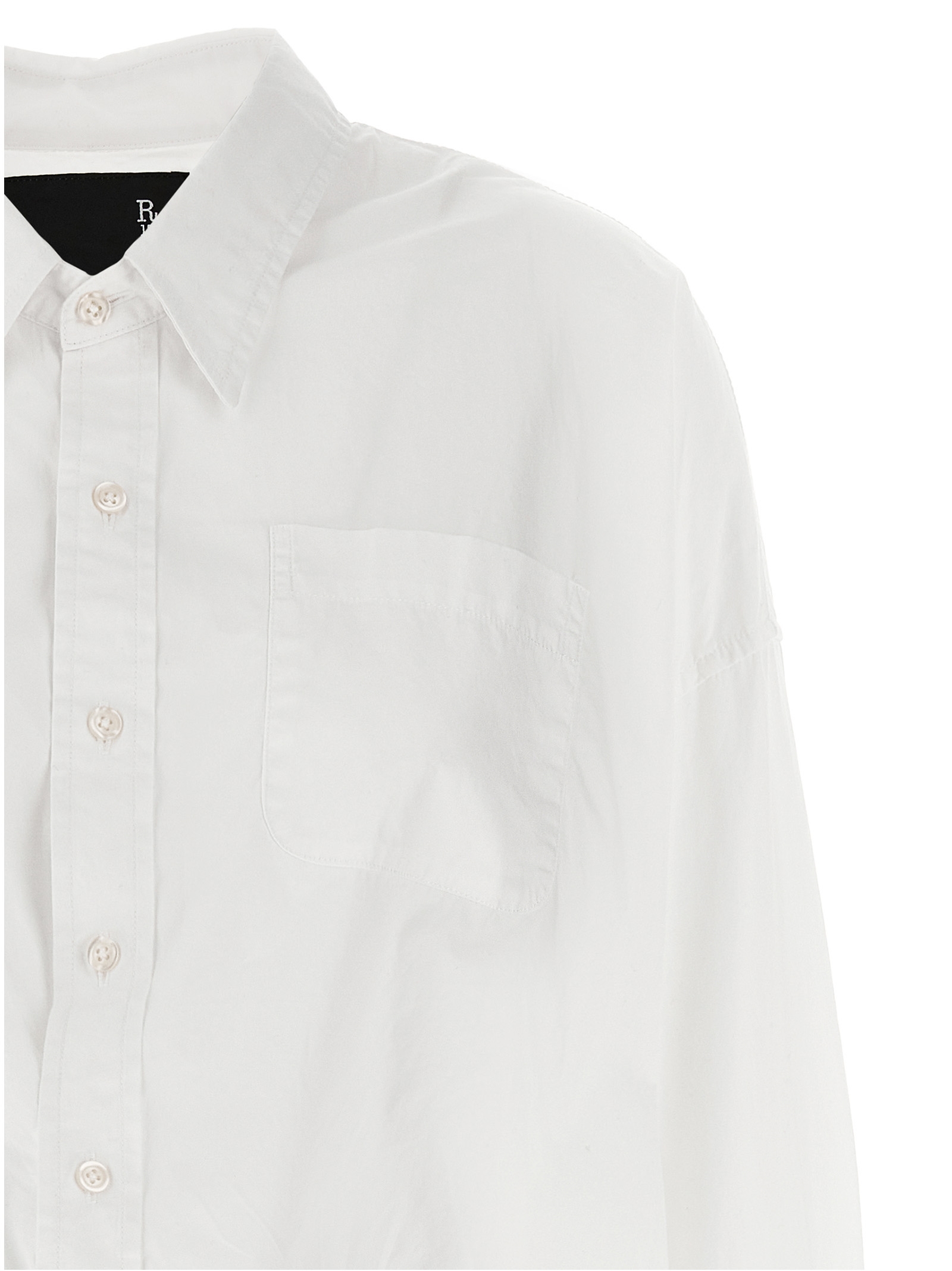 'Crossover Bubble' cotton shirt with button closure, breast pocket, long sleeves with cuffs and dropped shoulders, elastic hem. The shirt is designed not to be completely buttoned.