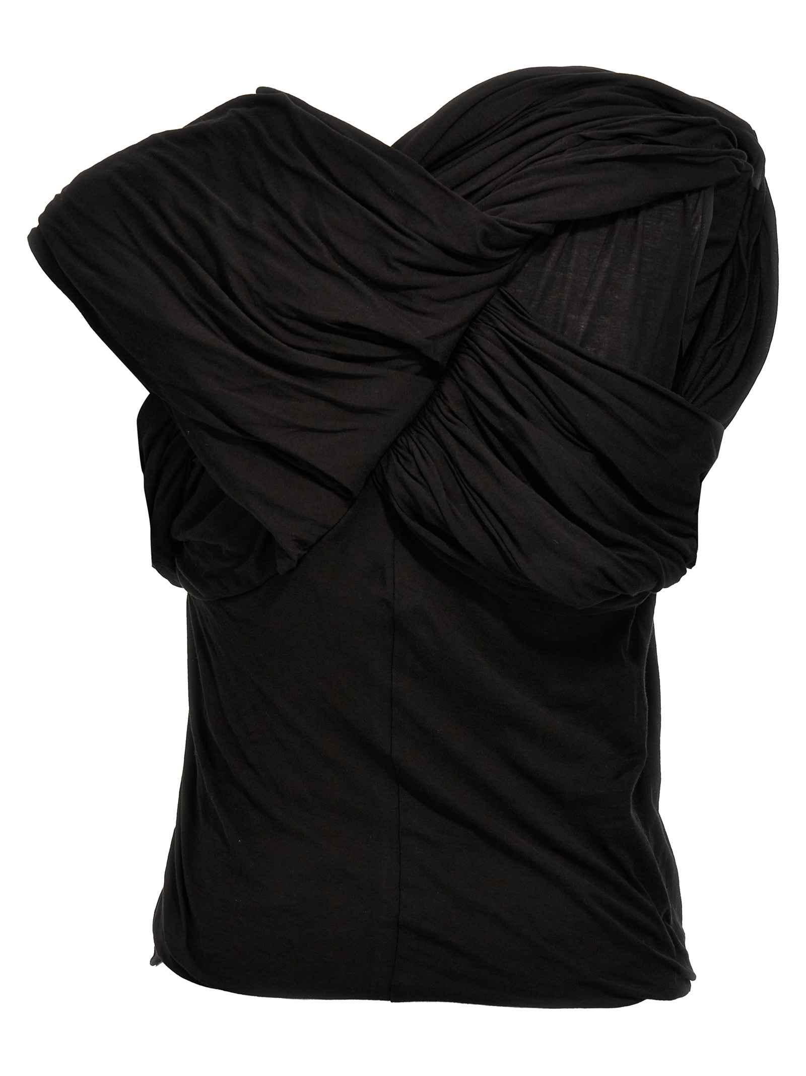'Harness' sleeveless draped cotton top with crew neck.