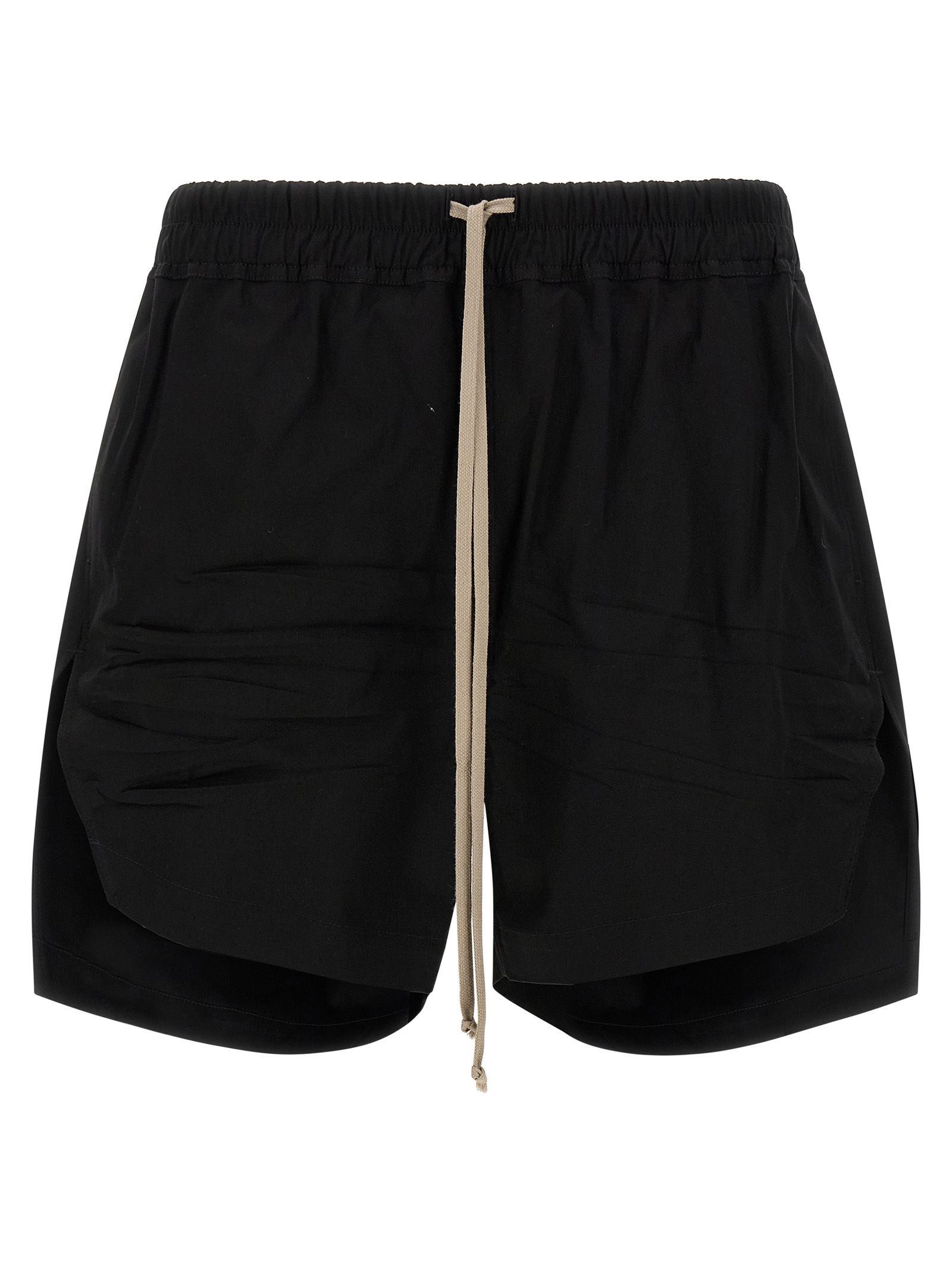 'Boxers' cotton poplin bermuda shorts, crunchy average coat weight, slightly low crotch model, wide leg with side splits, adjustable drawstring elastic at the waist, pockets.