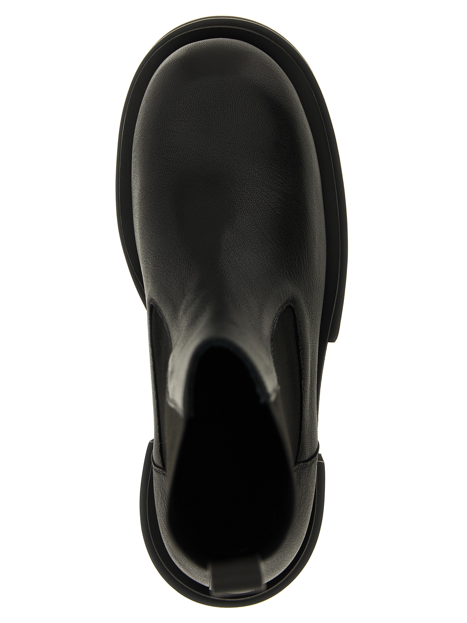 'Beatle Bogun' hammered leather ankle boots with elastic ankle insert, rubber sole with oversize platform. Product made with untreated leather, any signs and nuances are to be considered characteristics of uniqueness.