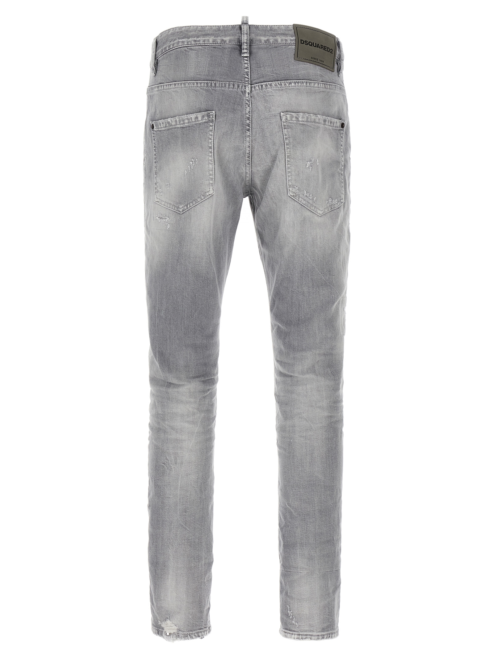 'Skater' cotton denim jeans with used-effect details and rips, front button closure, five pockets, and leather logo label at the back.