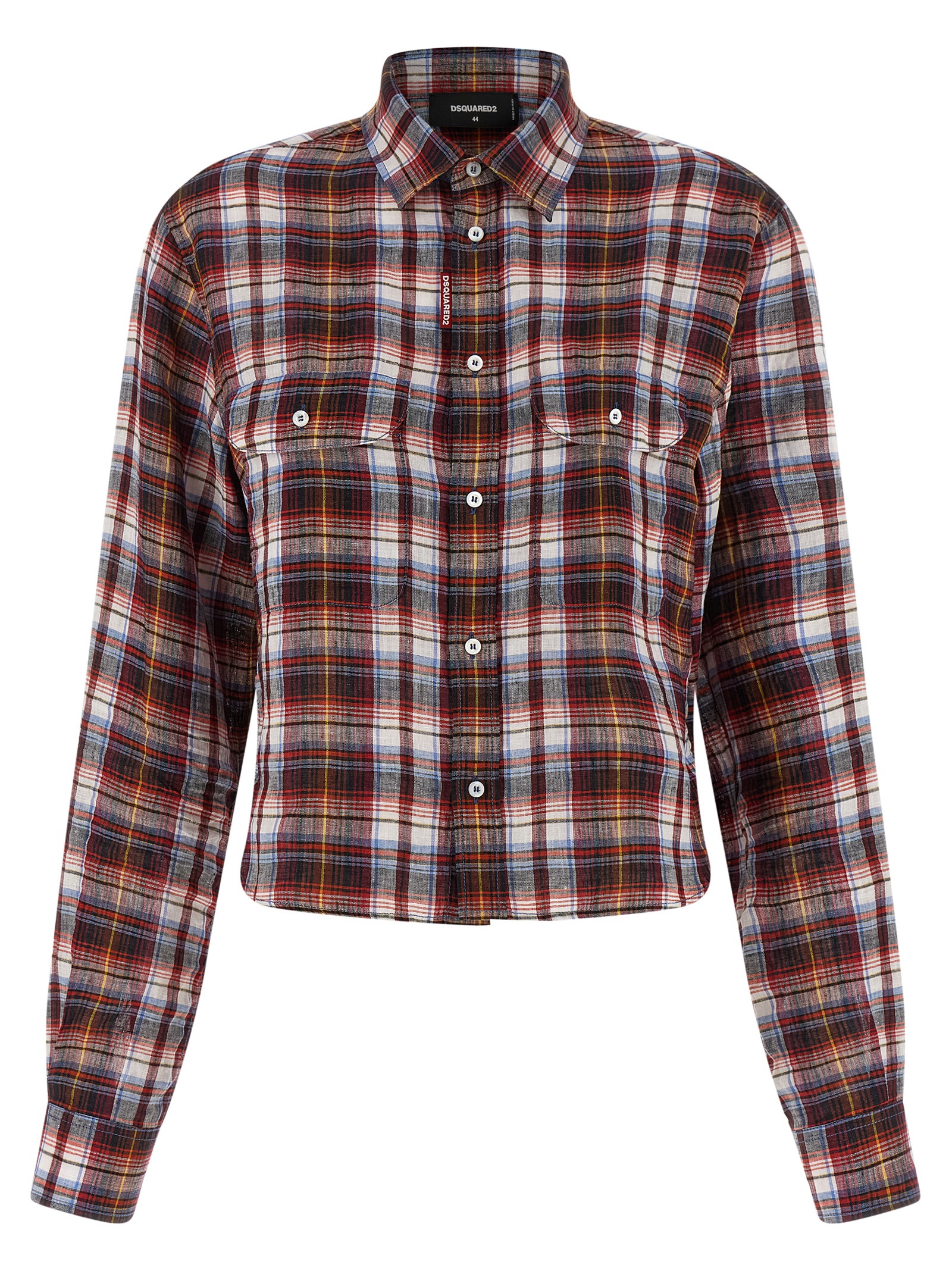 'Check Baby' breathable linen shirt with check print inspired by the college and Ivy League world, slightly cropped model, pockets, front button closure, long sleeves with cuffs and dropped shoulder, rounded hem.