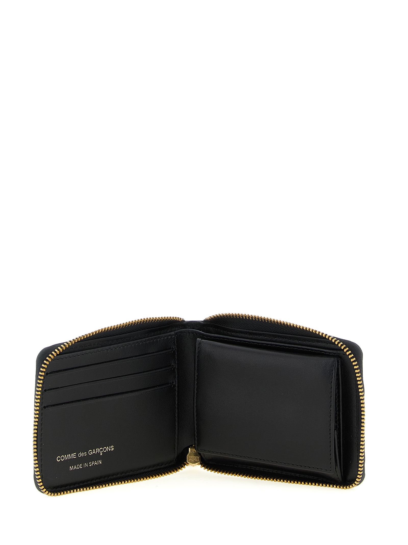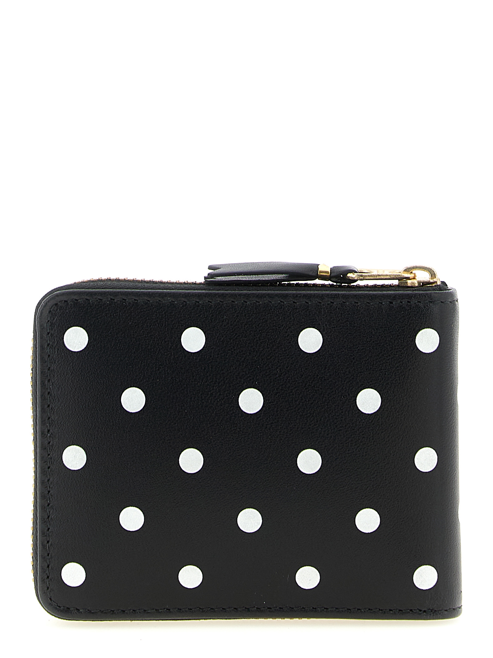 Polka Dots Printed wallet in polka dot print leather, zip-around closure.