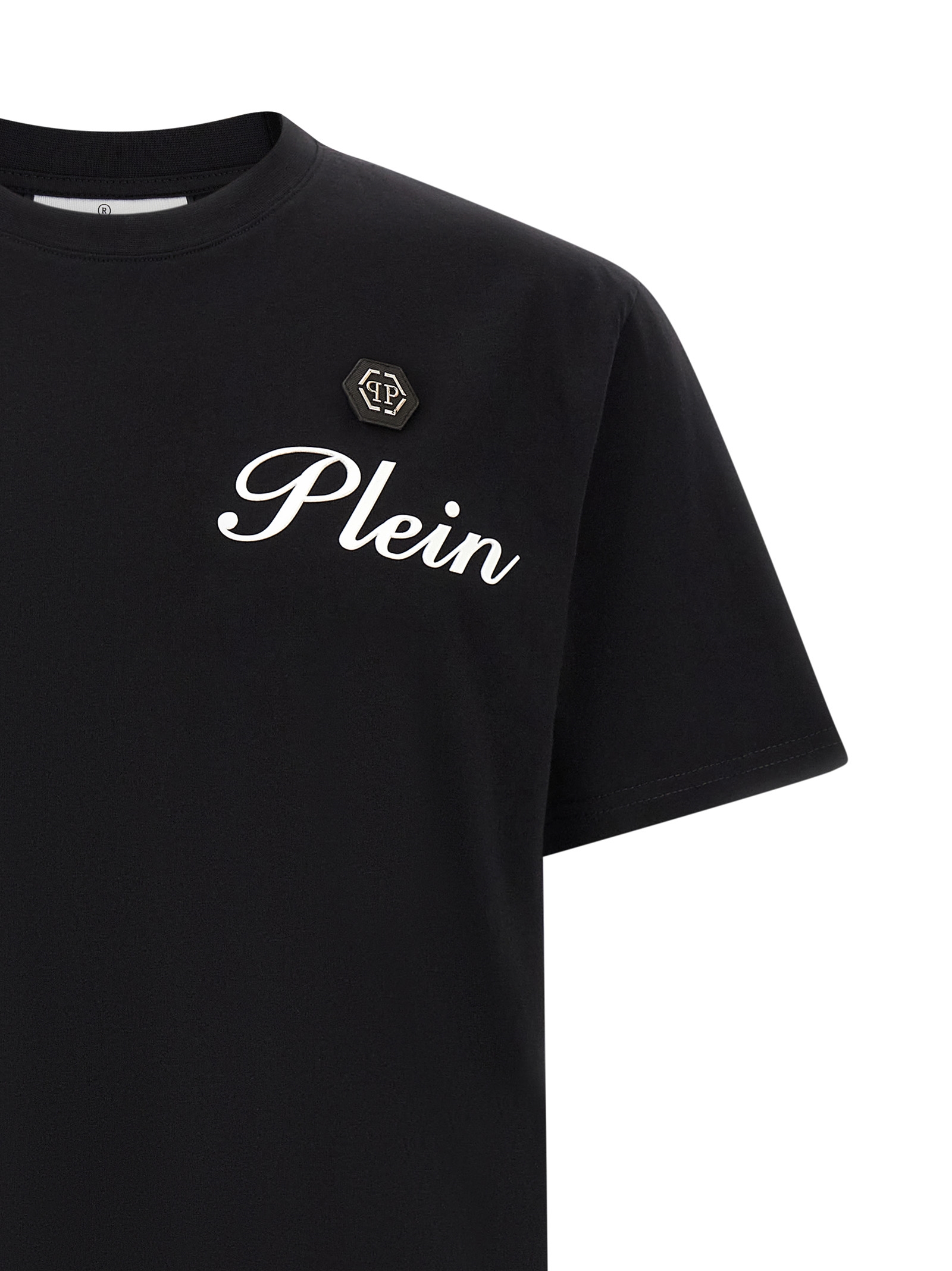 Cotton jersey T-shirt with 'Hexagon' patch and 3D logo on the front, crew neck, and short sleeves.