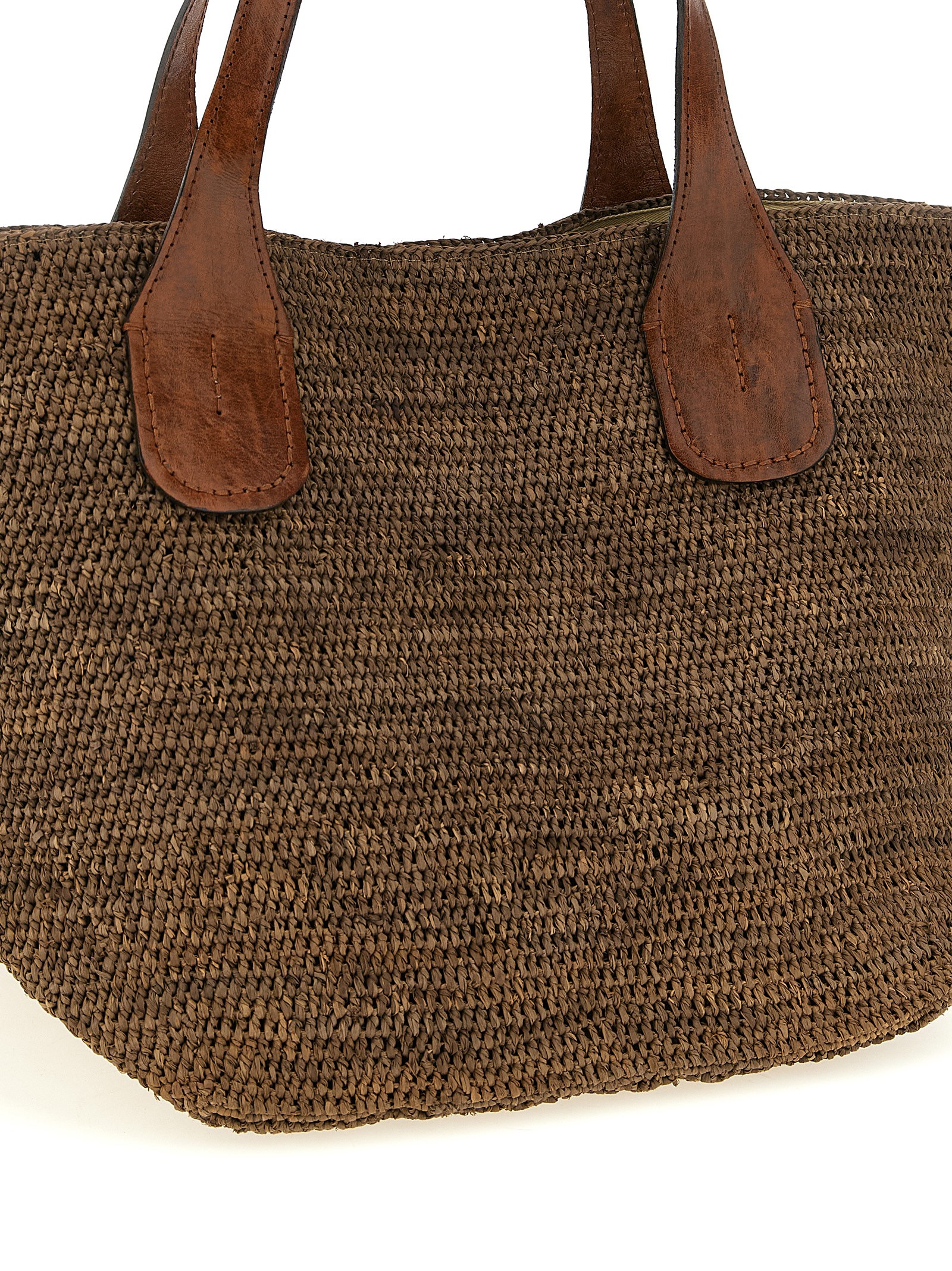 'Tokyo II' braided raffia shopping bag with basket design, internal magnetic closure, double fixed handle in vegetable-tanned zebu leather, cotton lining, four inner pockets. Handcrafted product, any imperfections are to be considered characteristics of uniqueness.