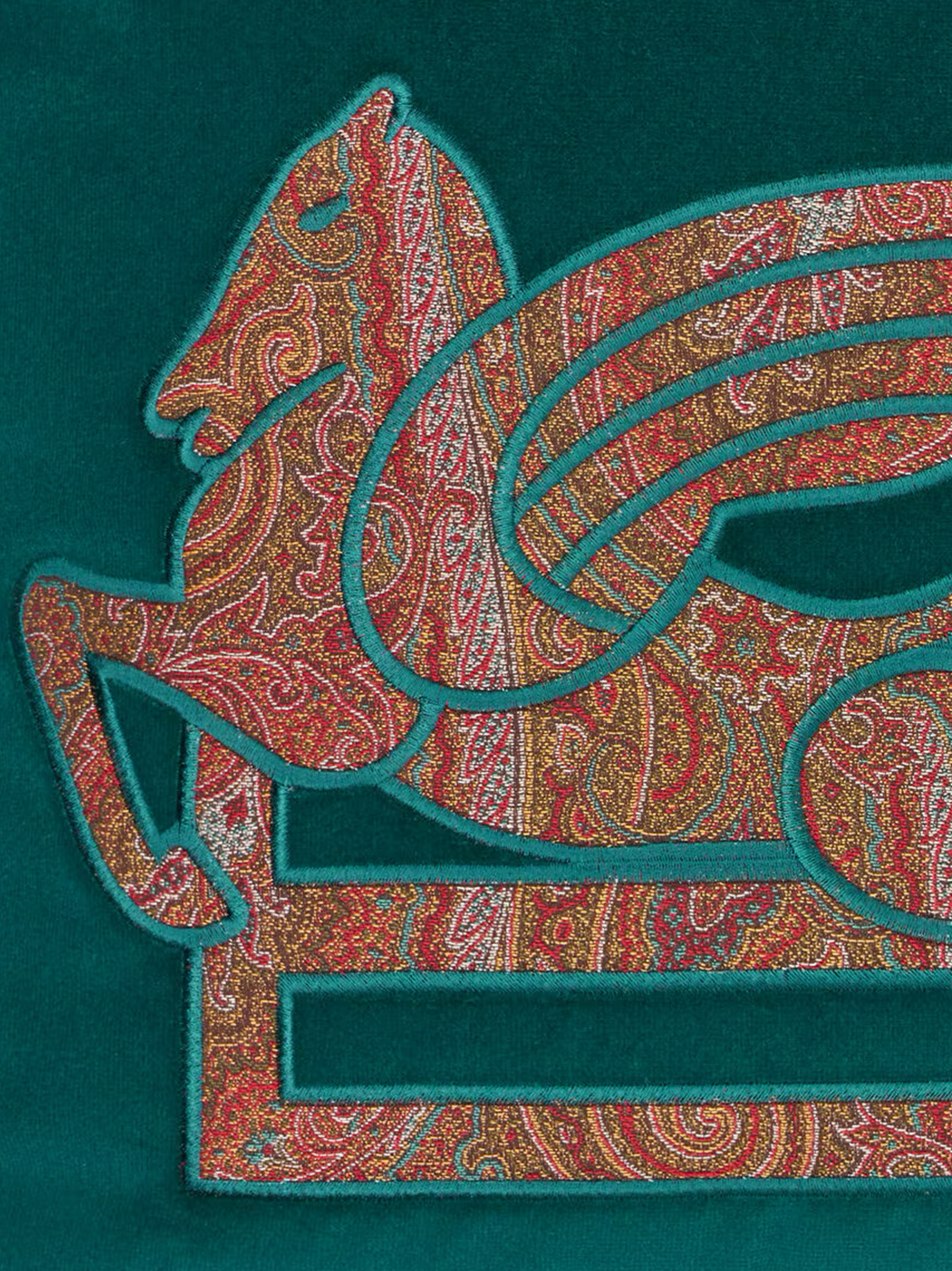 Cotton velvet cushion, logo embroidery and 'Pegaso' in the iconic Paisley jacquard fabric finished with a thread embroidery.