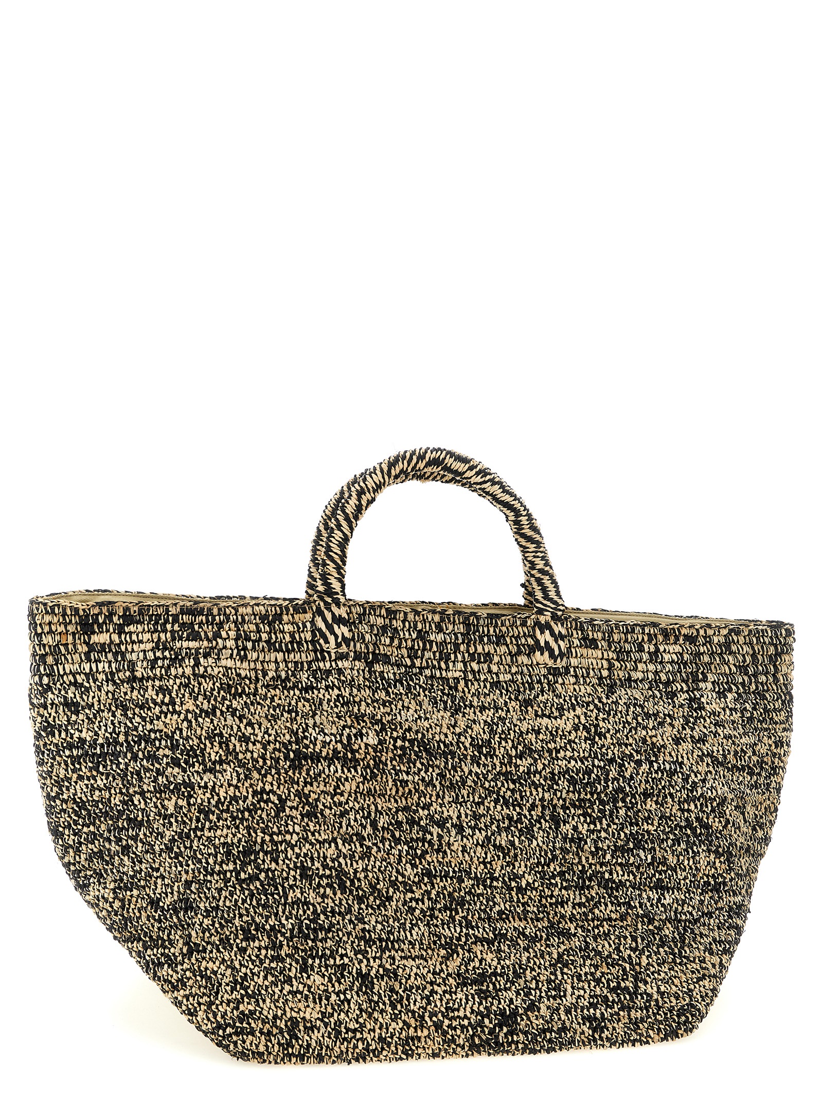 'Vanilla' two-tone natural raffia shopping bag with magnetic closure, cotton lining, double fixed handle. Handcrafted product, any imperfections are to be considered characteristics of uniqueness.
