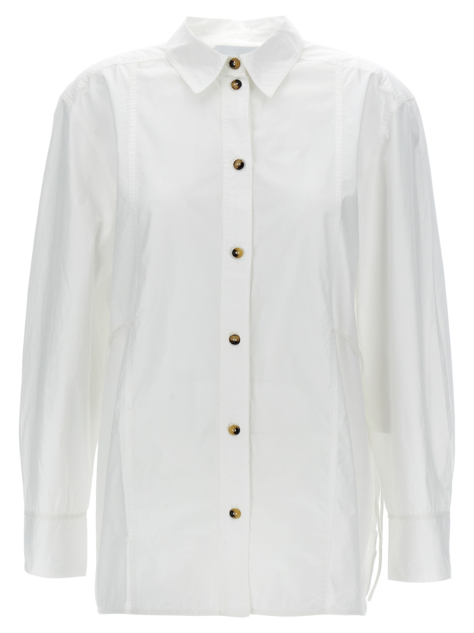 Cotton poplin shirt with laces at the waist and back, button closure, long cuffed sleeves. SUSTAINABLE: This product is made of organic cotton.
