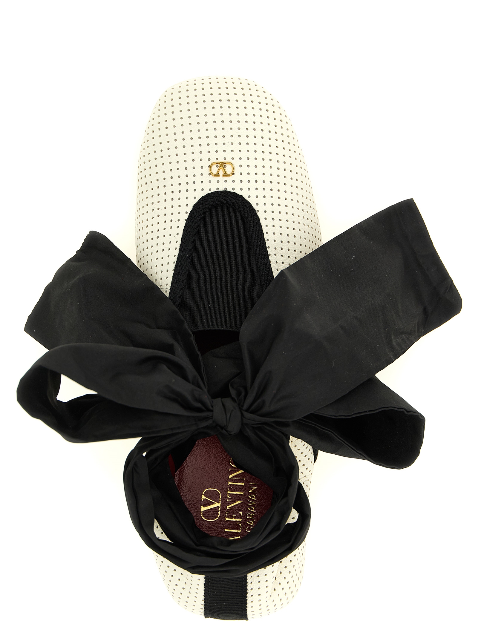 'Rythmika' openwork nappa leather ballet flats with elastic insert, square toe with VLogo Signature metallic brass finish with antiqued effect on the front, removable taffeta ribbon for ankle lacing, leather sole with injected rubber.