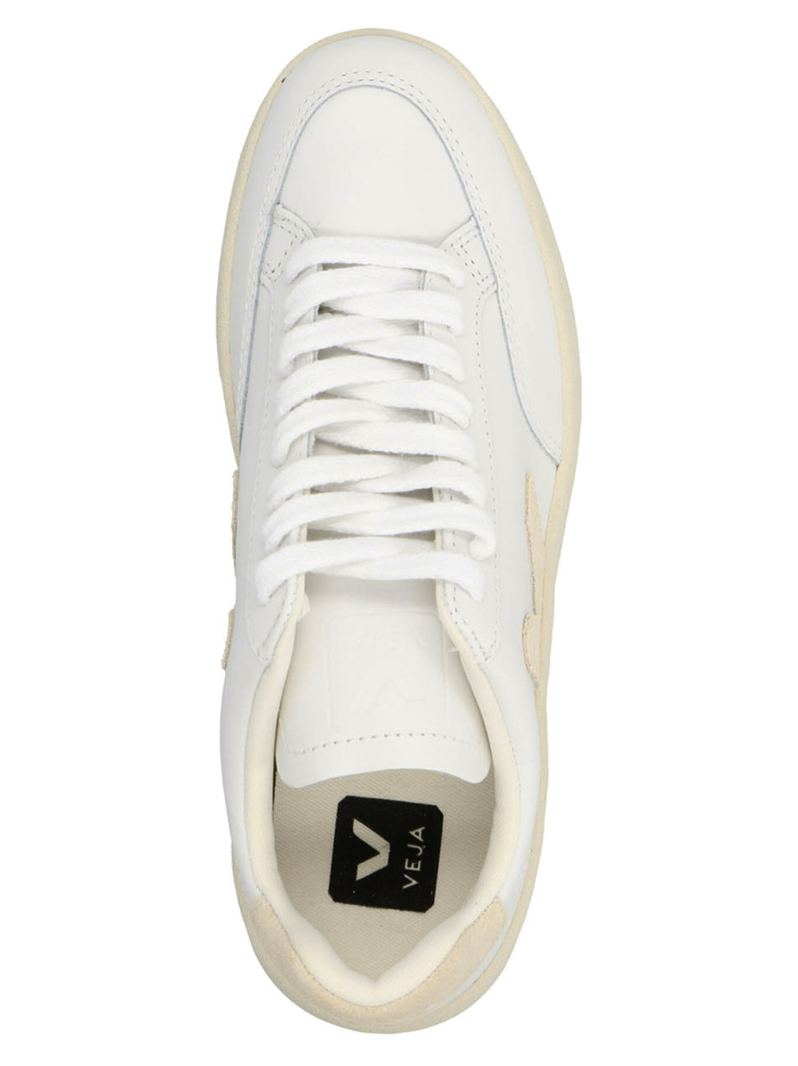 'V-12' leather sneakers with contrast beige suede logo and heel tab, laces and rubber sole.